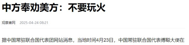 观察者网2025-04-24——中方奉劝美方:不要玩火